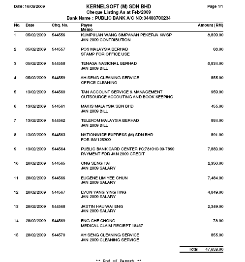 Cheque History & Report Printing